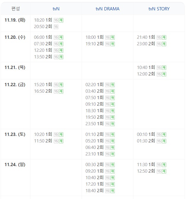 재방송 시간 편성 정보