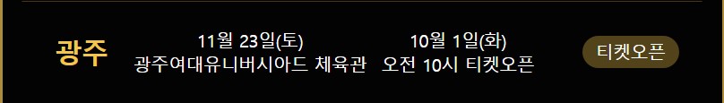 | 장소 | 콘서트 날짜 | 티켓 오픈 |