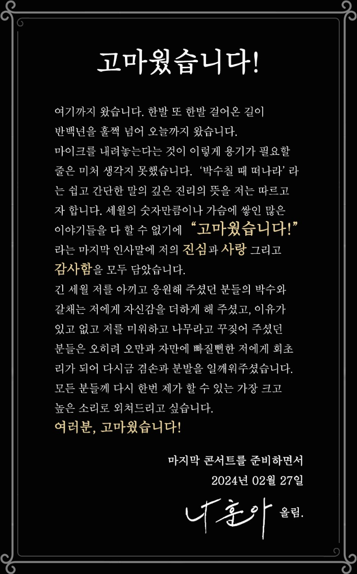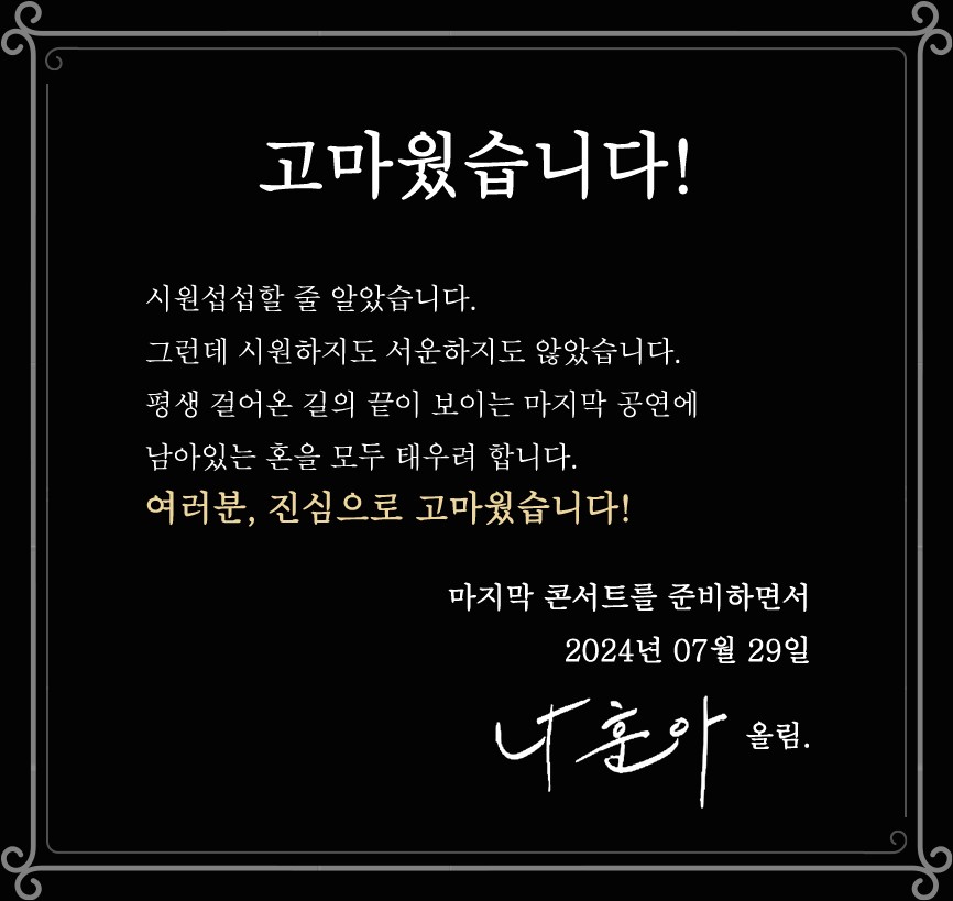나훈아는 소속사를 통해 하반기 일정과 함께 소감 편지를 공개했습니다.