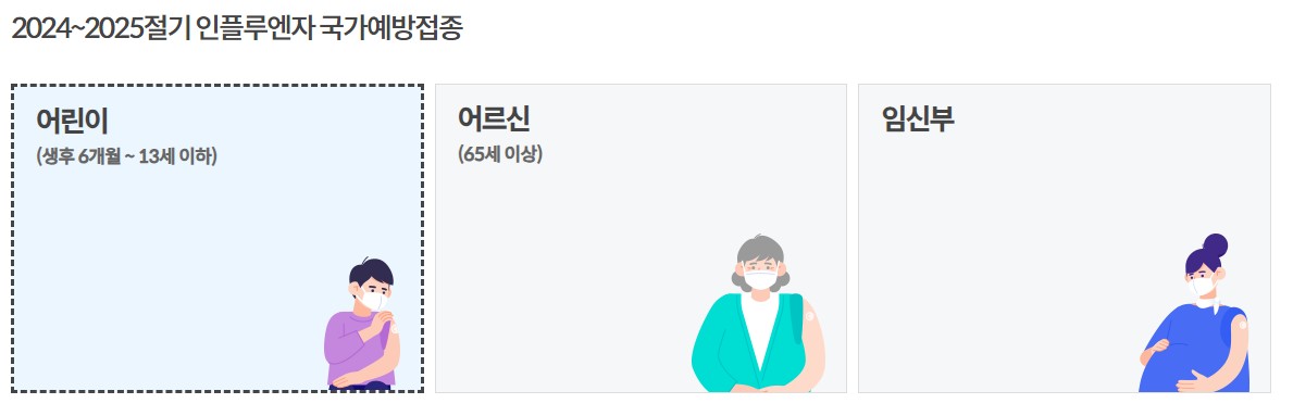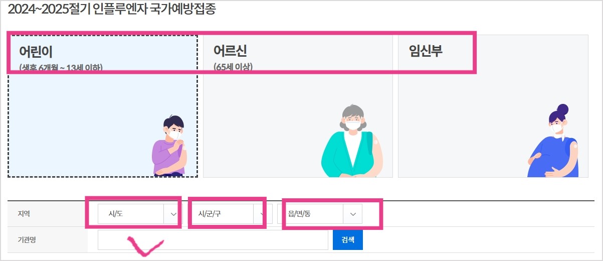 2. 접종 대상 중 어린이 어르신(65세 이상) 임신부 중 하나를 선택합니다.