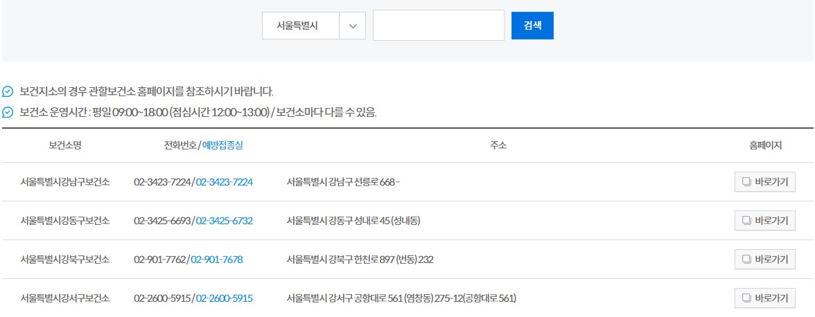 서울시 보건소 검색 결과를 예로 들어보았습니다.