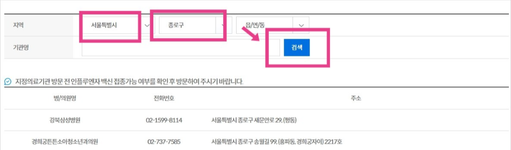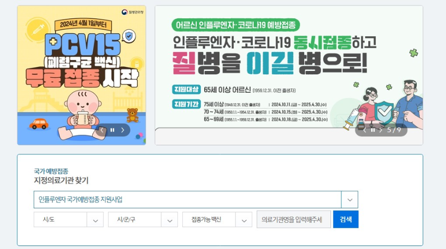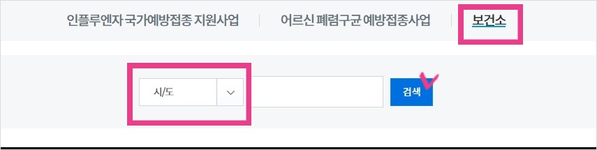 1. 예방접종도우미 홈페이지에서 인플루엔자 지정의료기관 찾기를 합니다.