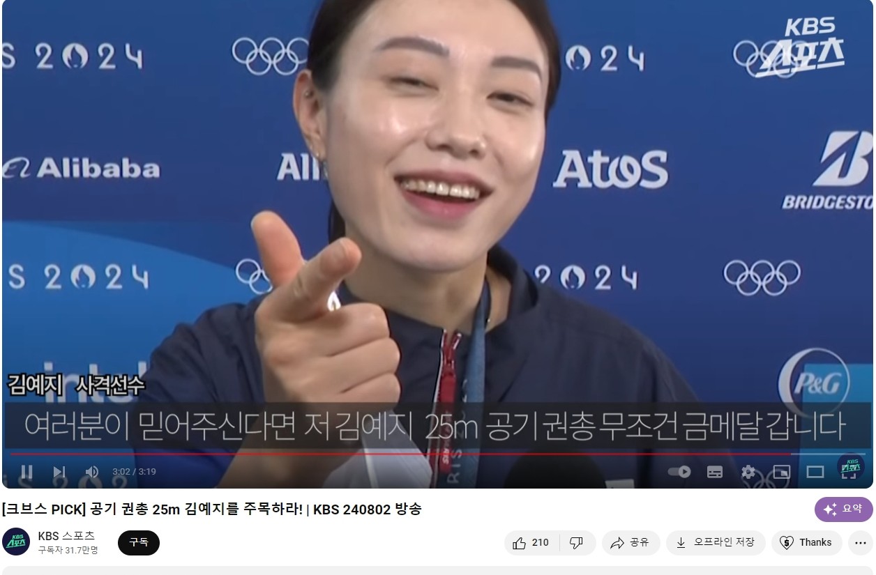 이렇게 "주인공 에너지"를 뿜어내는 사람을 본 적이 없다라는 멘션이 달린 김예지의 경기 영상이었습니다.