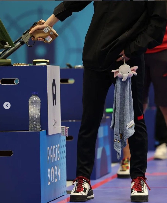 이 영상은 파리올림픽이 아닌 지난 5월 바쿠 사격 월드컵 경기 세계 기록을 달성하는 장면을 담고 있습니다.