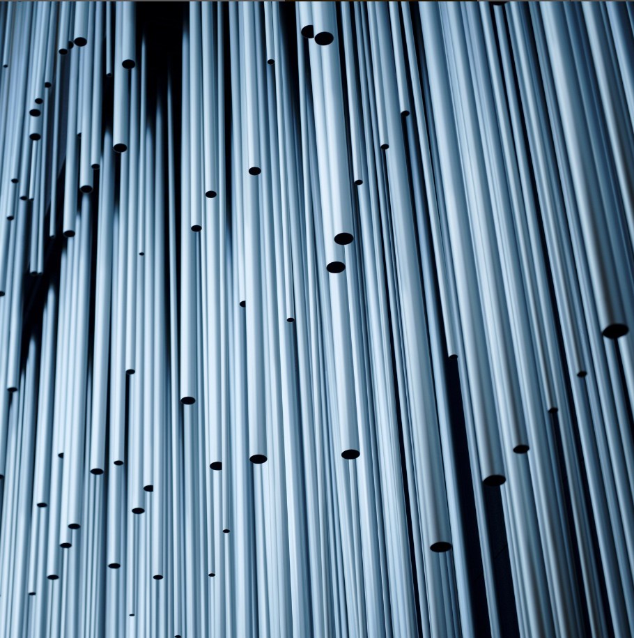 오디움의 건축물은 세계적인 건축가 쿠마 켄고와 그의 팀이 설계하였습니다. 건축물의 파사드는 알루미늄 파이프를 사용하여 숲속의 빛의 변화를 표현하였으며, 빛과 그림자가 마치 숲에 스며드는 효과를 내면서 도심 속 자연을 표현했습니다.