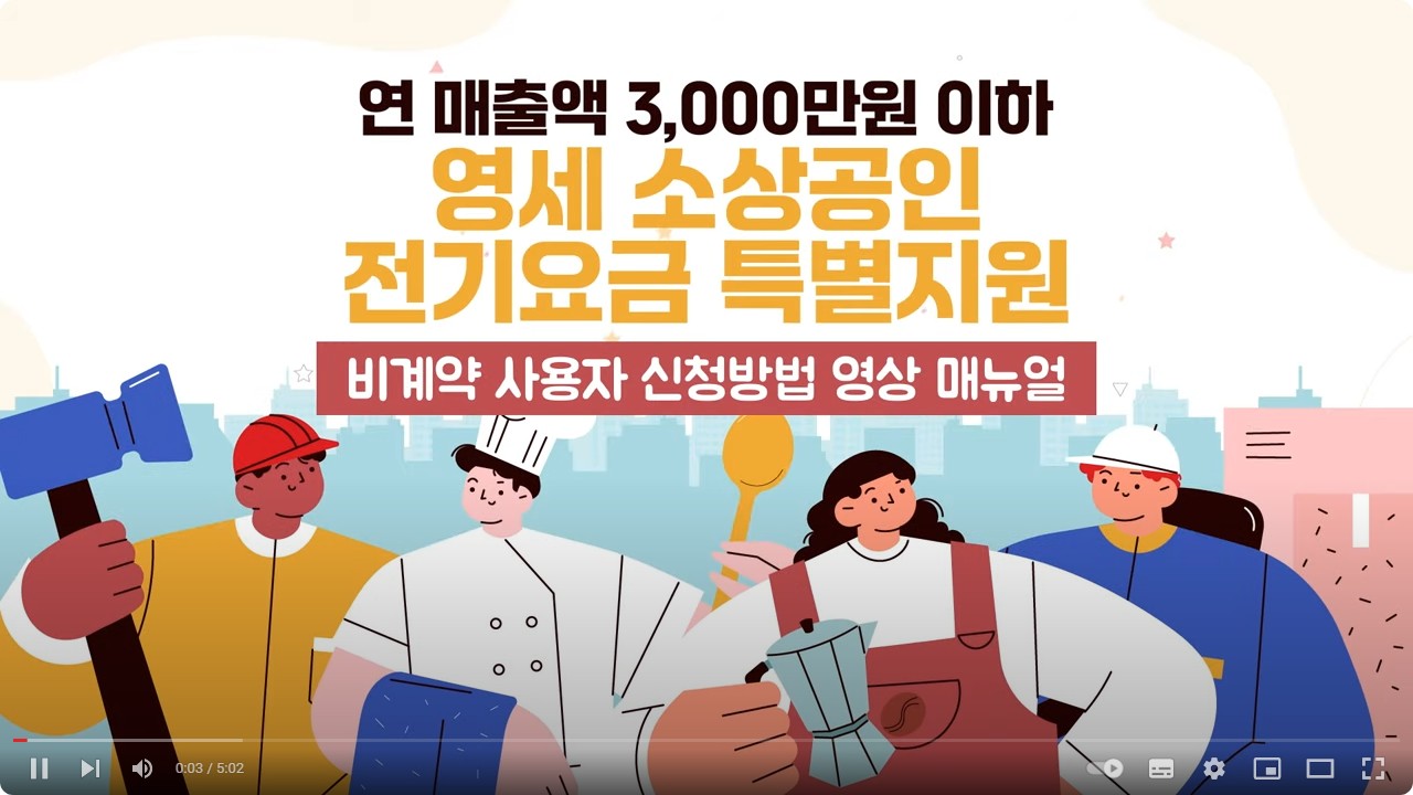 현재 활동 중인 연 매출액 3천만원 이하, 사업장용 전기요금을 부담하는 개인/법인 사업자
