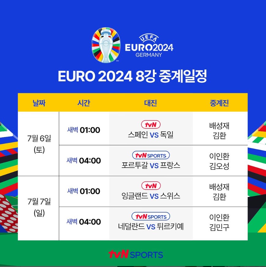 유로 2024 8강 중계 일정