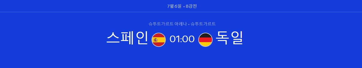 2024년 7월 6일 유로 2024 8강 경기가 펼쳐집니다. 우승후보로 꼽혔던 스페인 vs 독일 그리고 포르투갈 vs 프랑스까지 두 경기 모두 빅매치입니다. 이번 유로 2024는 결승같은 8강 놓치지 않고 생중계로 보는 사람이 승자입니다. 아래 버튼 통해서 PC로도 모바일로도 회원가입 없이 무료로 생중계 보세요.