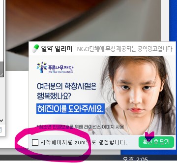 한 가지 더, 알약을 설치하면 위와 같이 컴퓨터 오른쪽 하단에 가끔 광고가 뜨는데요. 시작페이지 설정 체크 없애고 확인 후 닫기 누르시면 사라집니다. 그냥 확인 누르시면 인터넷 시작 페이지가 바뀌게 되니 유의하시길 바랍니다. 알약은 실시간으로 바이러스나 악성코드 랜섬웨어가 들어오는지 감시해 줍니다. 업데이트도 자동으로 되니 쾌적한 컴퓨터 사용을 위해 계속 켜 두시다가 가끔씩 빠른 검사나 정밀 검사 한 번씩 돌려주시길 바랍니다.