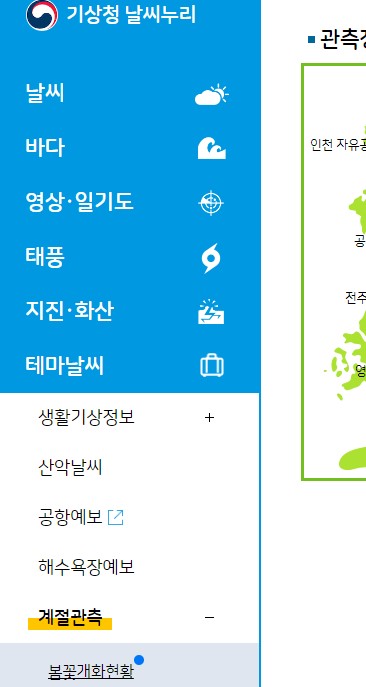 봄꽃개화현황 - 벚꽃 - 기상청 날씨누리