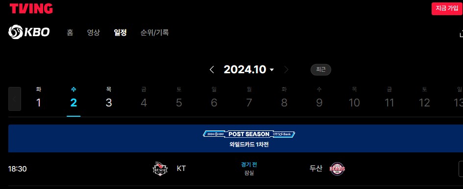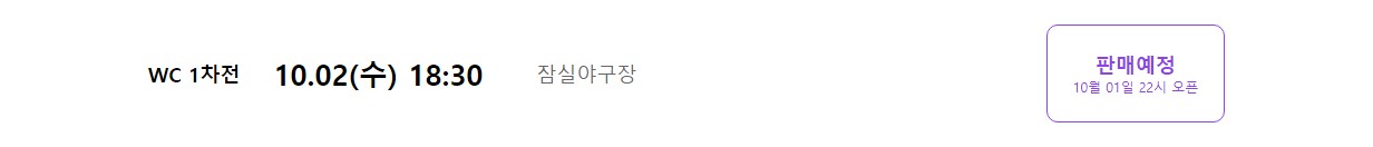 와일드카드 1차전 티켓 오픈 : 10월 1일 밤 10시
