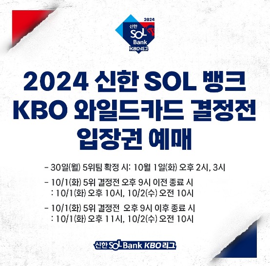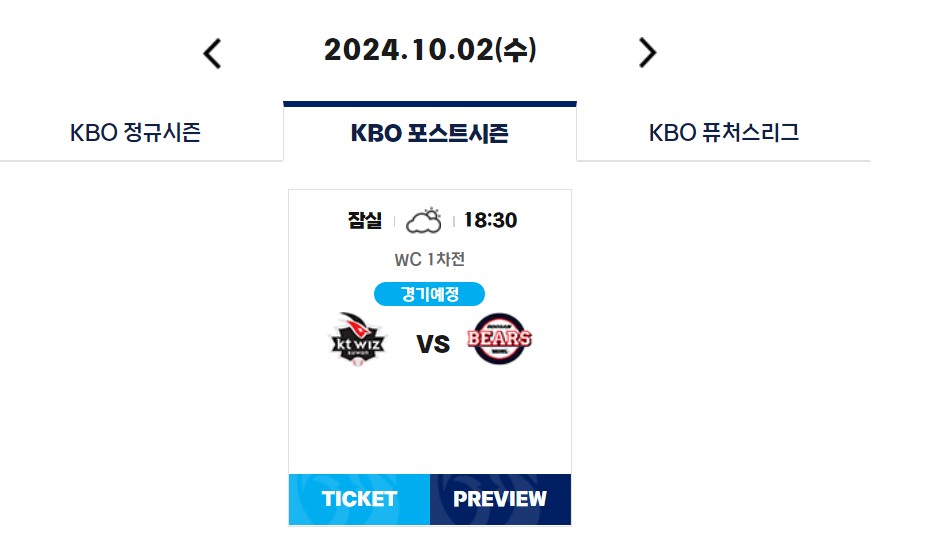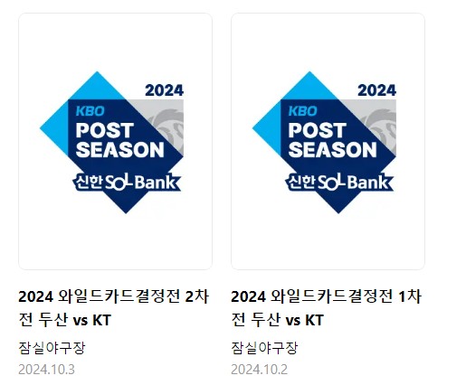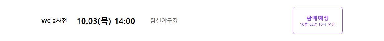 와일드카드 2차전 티켓 오픈 : 10월 2일 오전 10시