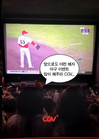 CGV 에서도 2024년 포스트시즌 가을야구 전 경기를 야구장과 극장 이원 생중계로 생생하게 보실 수 있습니다.