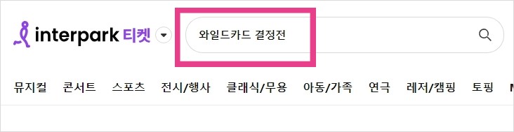 2. 검색창에 와일드카드 결정전을 입력하여 예매합니다.