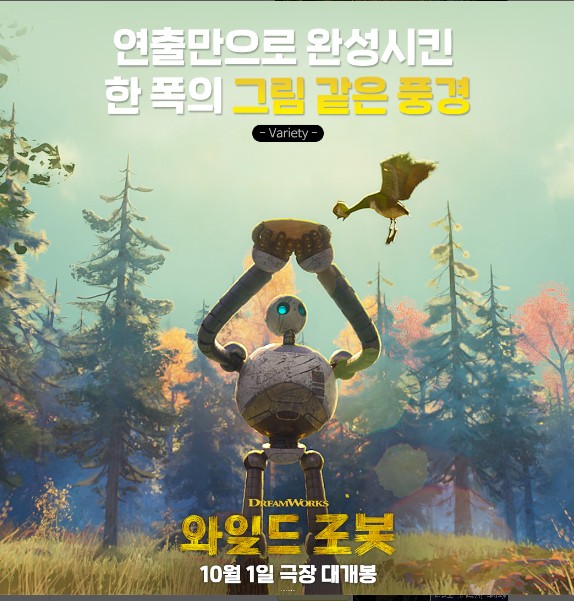 어마어마한 영화가 개봉하였습니다. 뉴욕타임즈 베스트 셀러이자 아마존 올해의 책을 원작으로 하는 <와일드 로봇>에 관해 알려드립니다. 언론부터 관객까지 강력 추천하는 극장에서 놓치지 말아야할 올해의 애니메이션입니다. 편하고 빠르게 아래 버튼 통해서 예매하시고 감동의 순간을 영화관에서 직접 느껴 보세요.