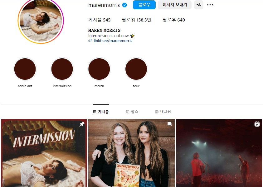 와일드 로봇 OST 뿐만 아니라 마렌 모리스의 다른 음악들이 궁금하시면 그녀의 인스타도 한번 보러가 보세요.