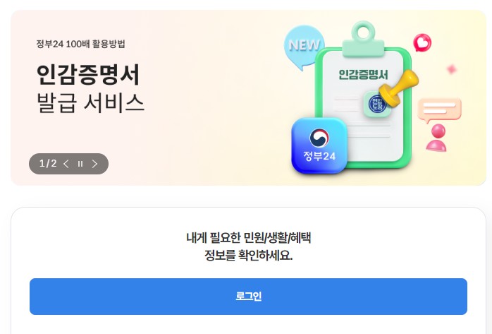 - 정부24 사이트에 접속합니다.