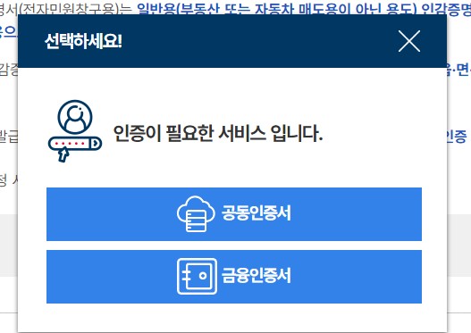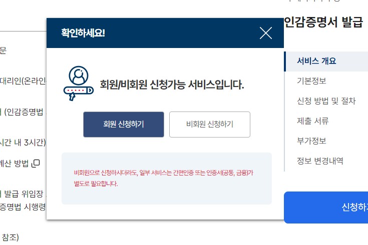 - 인감증명서 유의사항 확인 및 본인 확인