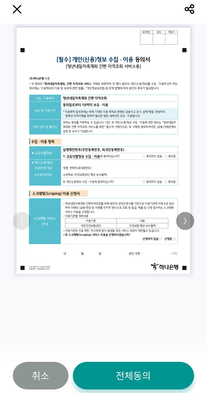 청년내일저축계좌 간편자격조회를 위해서는 하나은행 하나원큐앱이 필요합니다.