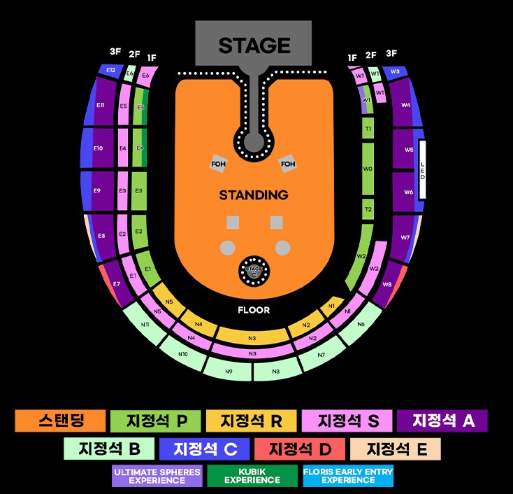 √ 스탠딩 구역 번호 1-1000번은 FLORIS EARLY ENTRY EXPERIENCE 좌석입니다.