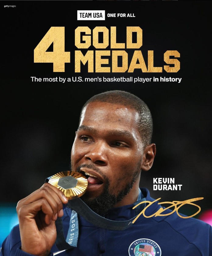 르브론 제임스는 파리올림픽 남자농구 결승전의 MVP로 뽑혔고, 케빈 듀란트는 4연속 금메달을 목에 걸게 되었습니다.