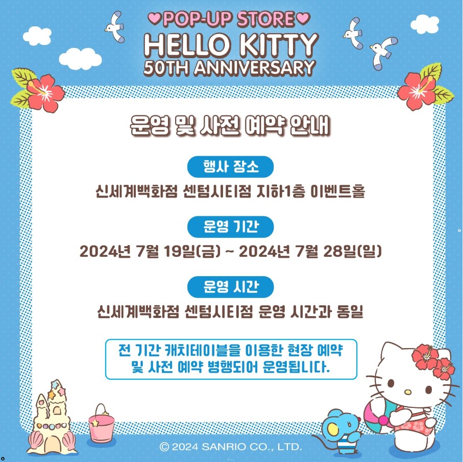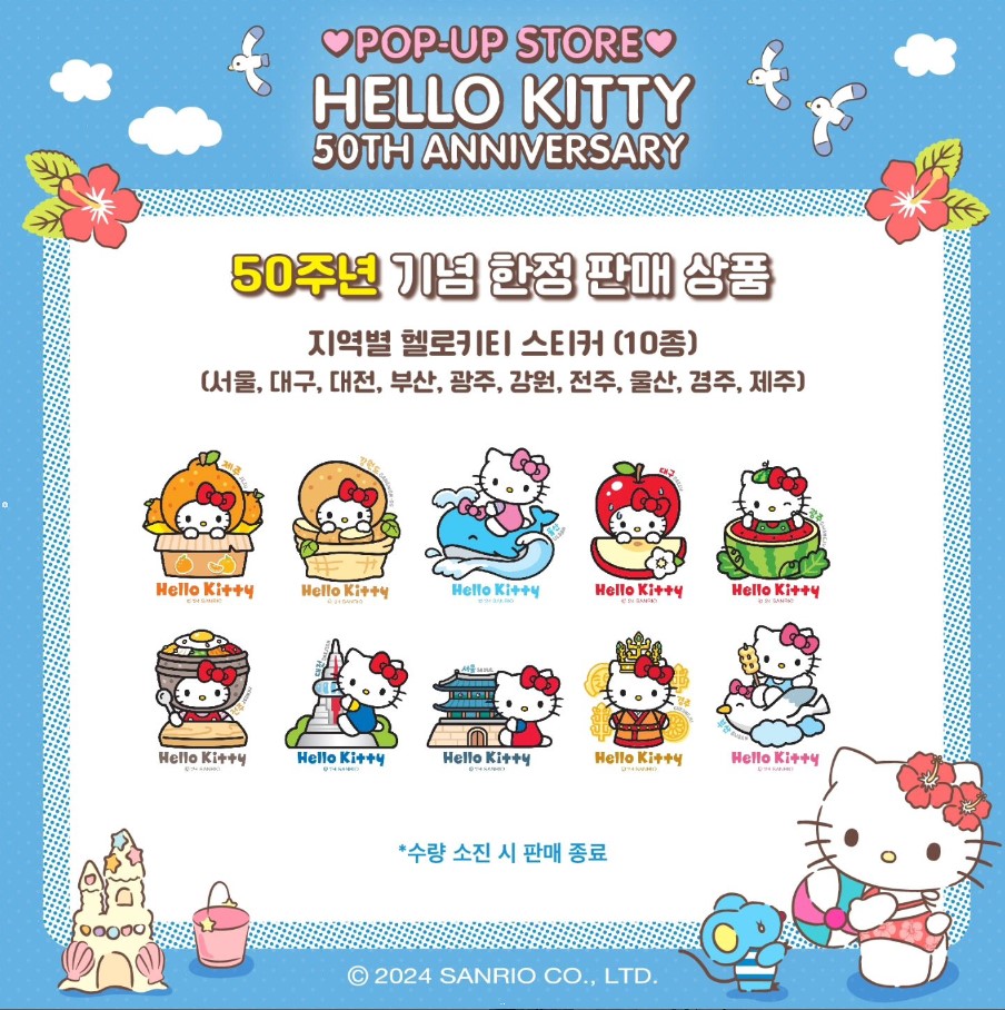 올해 헬로키티 탄생 50주년을 기념하여 부산과 대구에서 팝업스토어가 열립니다. 팝업스토어 정보와 사전예약 방법 그리고 50주년 특별 굿즈를 소개해드립니다. 각각 기간이 길지 않으니 웨이팅 없이 다녀오시려면 아래에서 사전예약 미리 하세요.