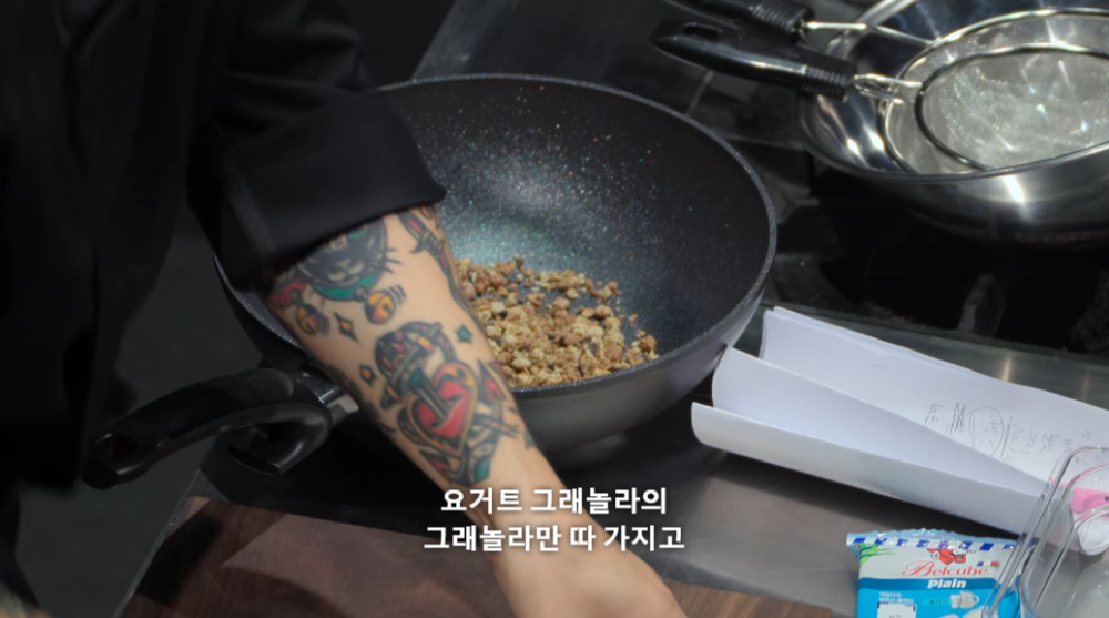 5. 마지막으로 바삭한 식감을 위해 프라이팬에 볶은 그래놀라를 올려 마무리한다.