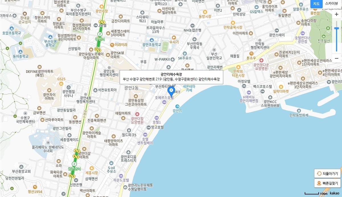 좌석은 광안리 아쿠아팰리스와 호메르스 호텔 앞 백사장 쪽에 위치해있습니다.
