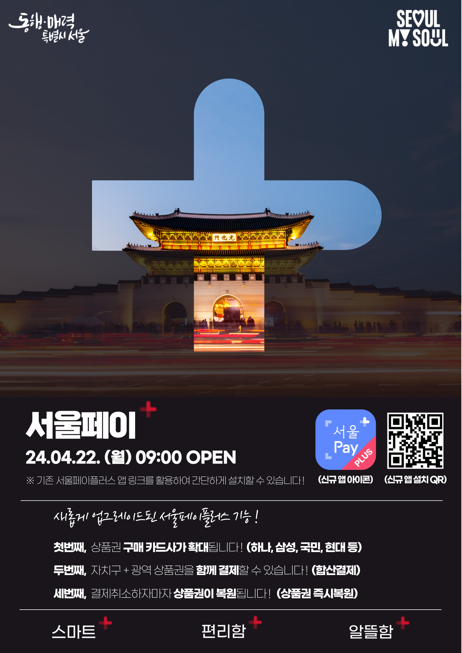 2024년 4월 24일부터는 서울사랑상품권을 이용하시려면 신규 서울페이플러스 서울pay+ 앱을 사용하셔야 합니다. 기존 서울페이 앱에서는 더 이상 서울사랑상품권을 사용하실 수 없으니 다소 귀찮더라도 신규 서울페이+ 앱을 설치해주셔야 합니다. 다행히 기존 가지고 계시던 서울사랑상품권 잔여금은 자동으로 이전됩니다. 아래 버튼을 통해 안드로이드 아이폰에 맞게 앱 설치하시면 됩니다.