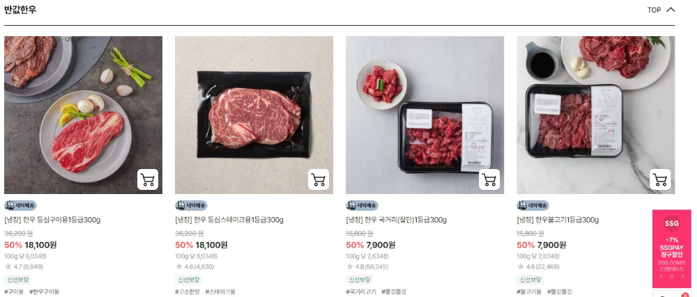 반값한우 품목에 추가 카드할인 혜택까지 받을 수 있습니다.