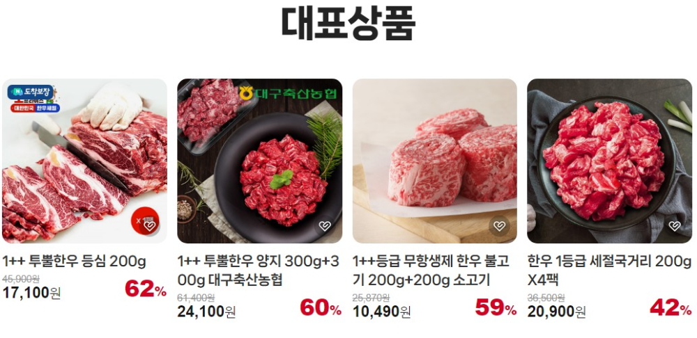 투뿔한우 상품들이 다른 몰에 비해 다양합니다.