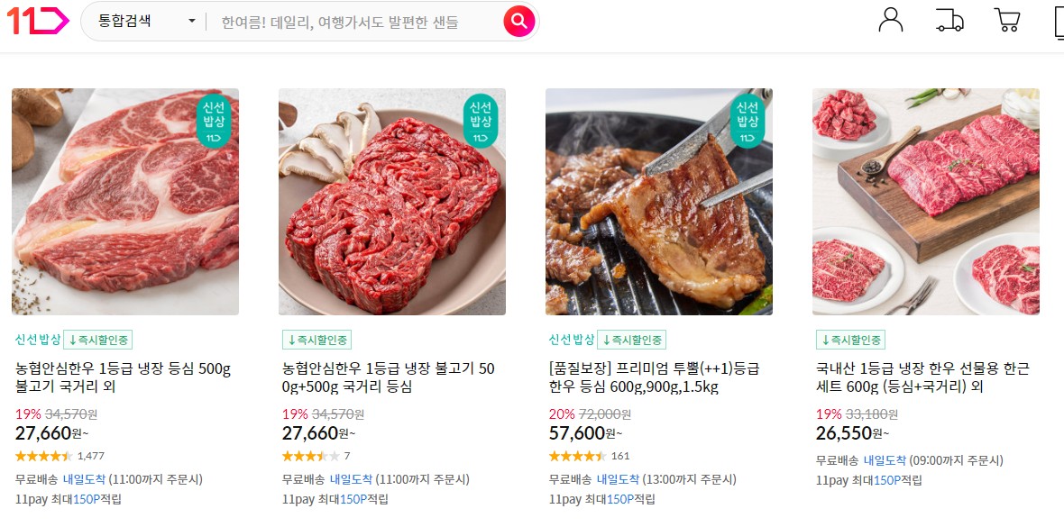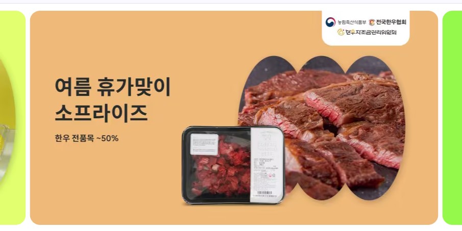 아이들 여름방학에 또 휴가철을 앞두고 먹거리 고민 많으시죠? 당장 식비가 걱정인데 한우 반값 행사가 진행 중이라 한우세일 행사 매장과 온라인몰 정보 알려드립니다. 이번에는 세일을 잘 안하는 한우 투뿔까지 최대 50% 할인해 100g당 7,990원으로도 구매할 수 있다고 합니다. 행사 날짜가 얼마남지 않아 빠르게 구매하실 분들은 아래 버튼 통해서 바로 반값할인 받으세요.