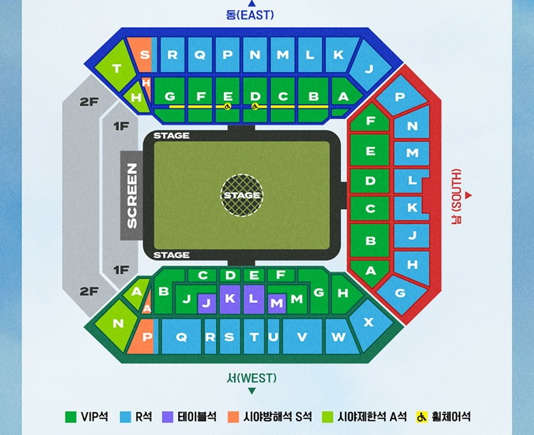 임영웅의 이번 상암 콘서트는 주제 파악 좀 해달라는 요청에 따라 서울월드컵경기장에서 펼쳐지게 되었습니다. 좌석 배치도를 보면 월드컵경기장 그라운드에는 객석이 없습니다. 기존 스탠드에만 객석을 배치하여 잔디 훼손을 최소화하겠다고 합니다. 이번 공연은 전석이 지정좌석이며 일부좌석은 북측에 설치되는 스크린으로 시야제한석으로 분류되었습니다.